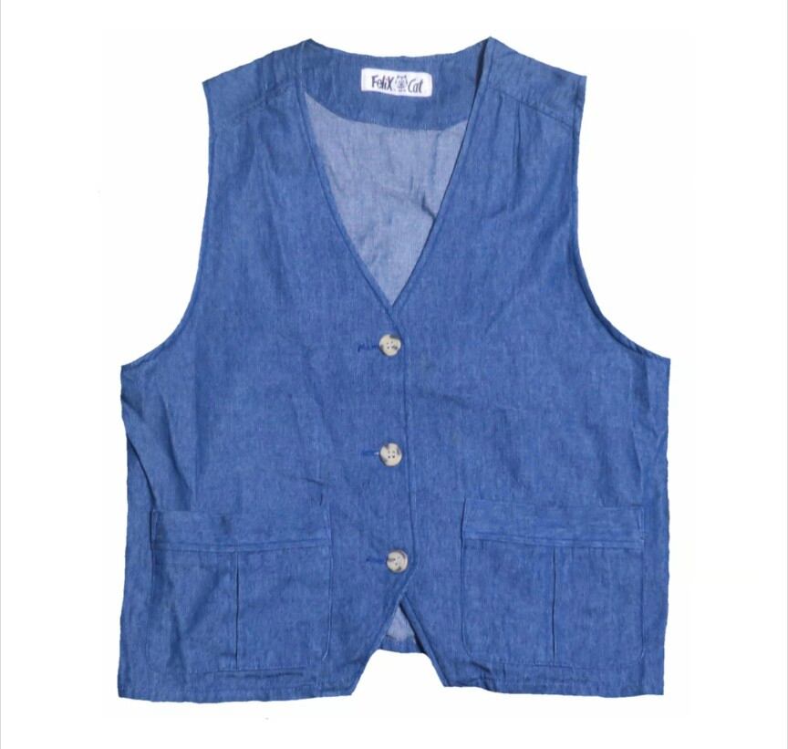 レディース Felix THE Cat(フェリックスザキャット) ベスト デニム 古着 キャラクター